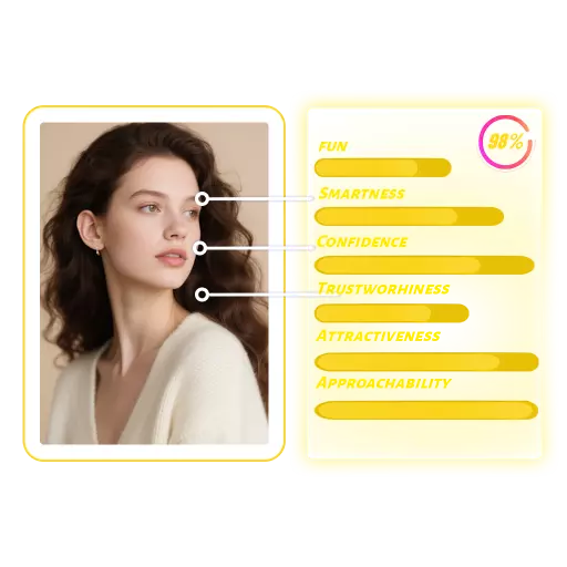 Reflects how reliable and sincere you seem. Clear eye contact, neutral lighting, and natural expressions often contribute to higher trust signals.