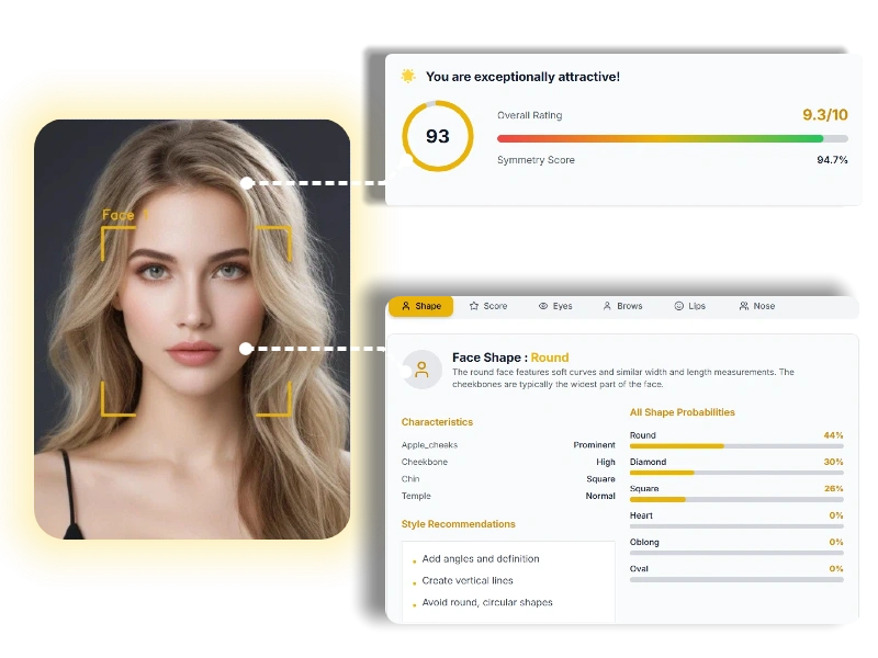 Discover your unique facial features with our free face shape detector. Get a professional face shape analysis in seconds to unlock the best hairstyles, glasses, and makeup for you.